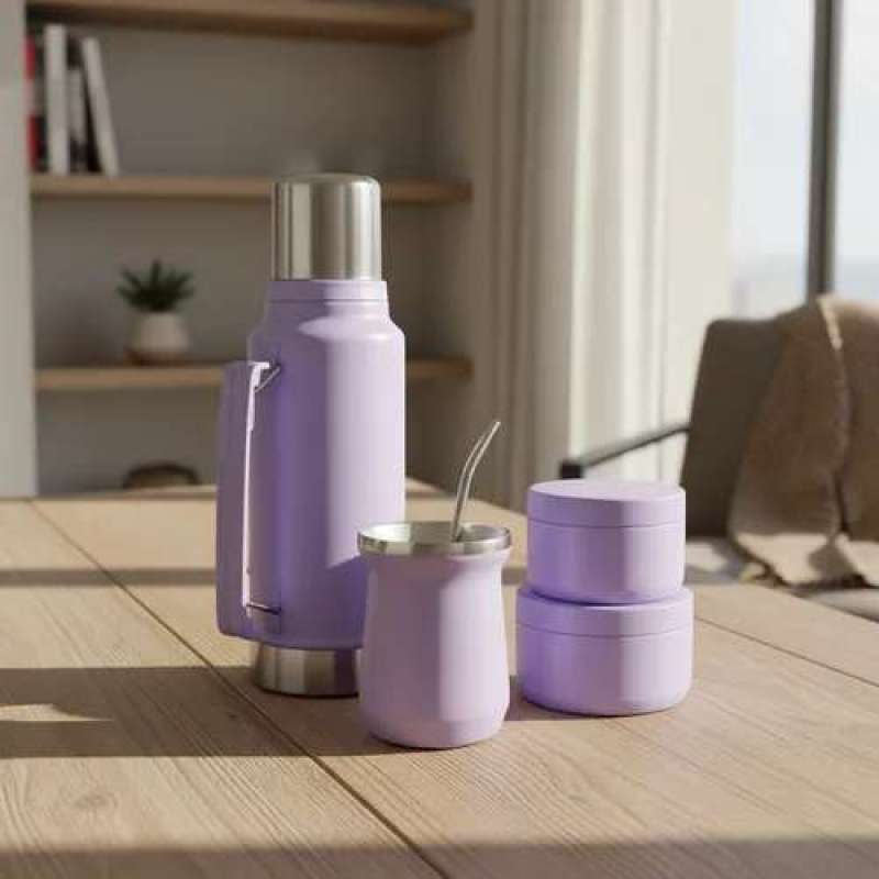 Credrink Factory Direct wholesale set Termo Mate cup & tea container Yerbera/azucerera Acero Inox -Lila