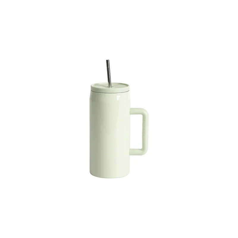 Material: Double wall stainless steel vacuum insulated, with SS straight straw & waterproof sliding lid. Removable plastic handle.