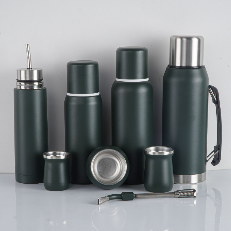 Credrink wholesale Yerba Mate thermos kit 0.5/0.75/1.0L mate thermos with 8oz&6OZ Cup Stainless Steel AUTOMate flask with Bombillas Double Wall Vacuum Insulated Yerba Mate Gourd Unique Auto-Mate bottle plus thermo And Bombilla Set